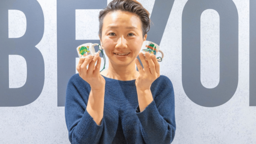私の手のひらに2つも乗るコンパクトサイズのマグカップ。