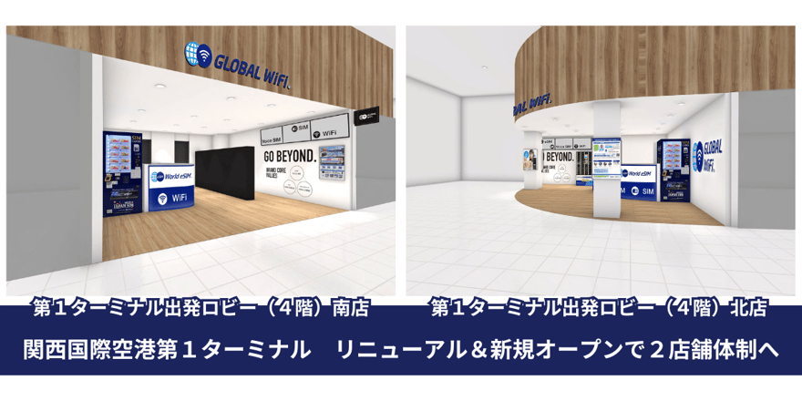 株式会社ビジョン、「グローバルWiFi®」関西国際空港第1ターミナル出発ロビーの店舗リニューアルに伴い、同フロアに新たに2店舗目をオープン。
